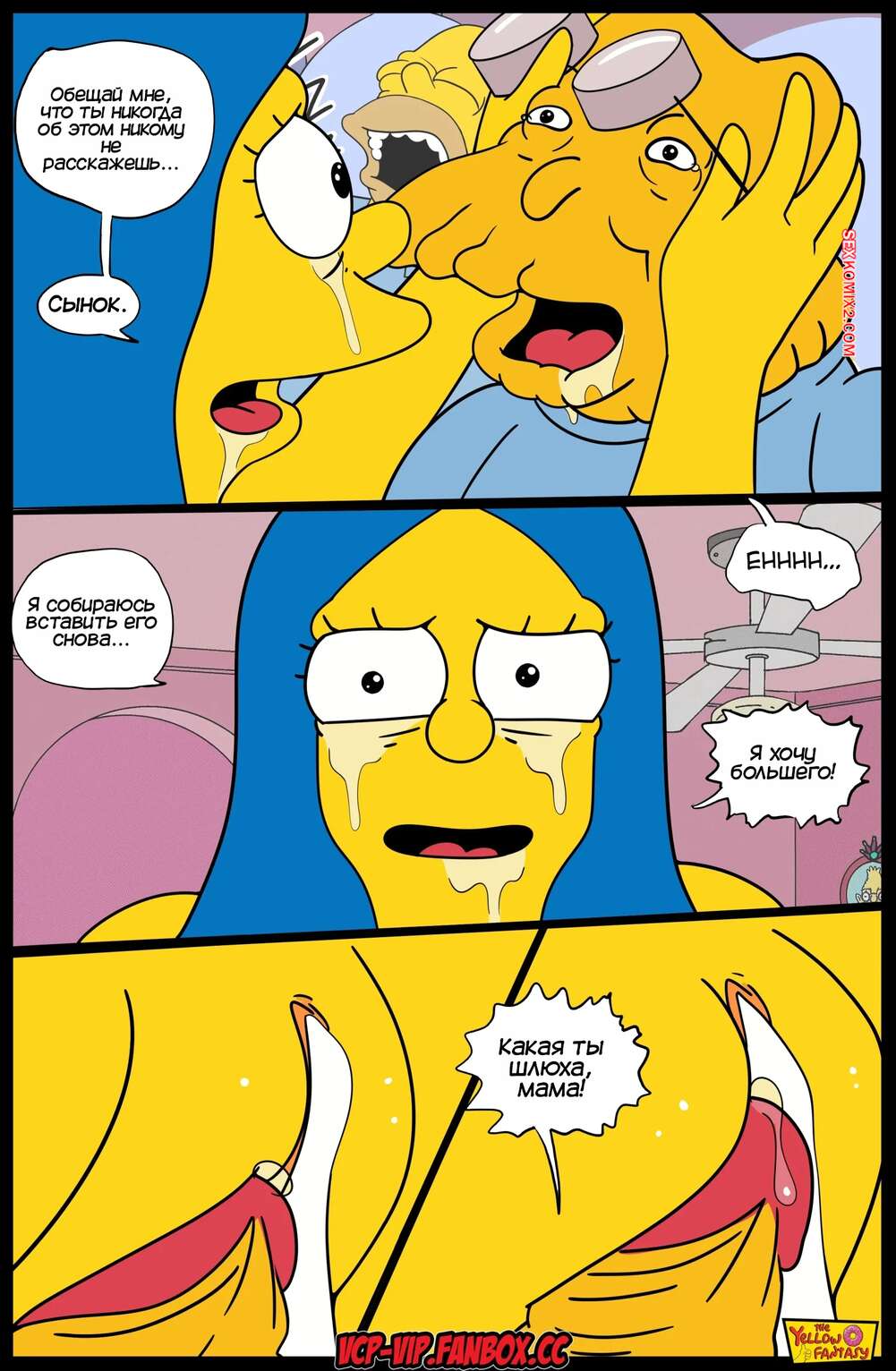 Порно комикс Симпсоны. Желтая фантазия. Шоу Хуана Топа. The Yellow Fantasy 18. VCP. Утром горячая домохозяйка Мардж готовить завтрак, но ее сынок не голодный, все чего он хочет в свой пубертат, так это трахаться. Он подходить к милфе и хватает ее за задницу.