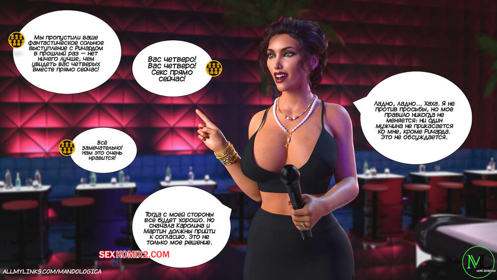 Порно комикс Все вместе. Часть 20. Teamwork. MandoLogica Шоу в клубе продолжается и зрителей ждет большой сюрприз. К детям и мужу выходит Каролина в сексуальном наряде, что сразу будоражит зрителей. Им не терпится увидеть развитие событий.