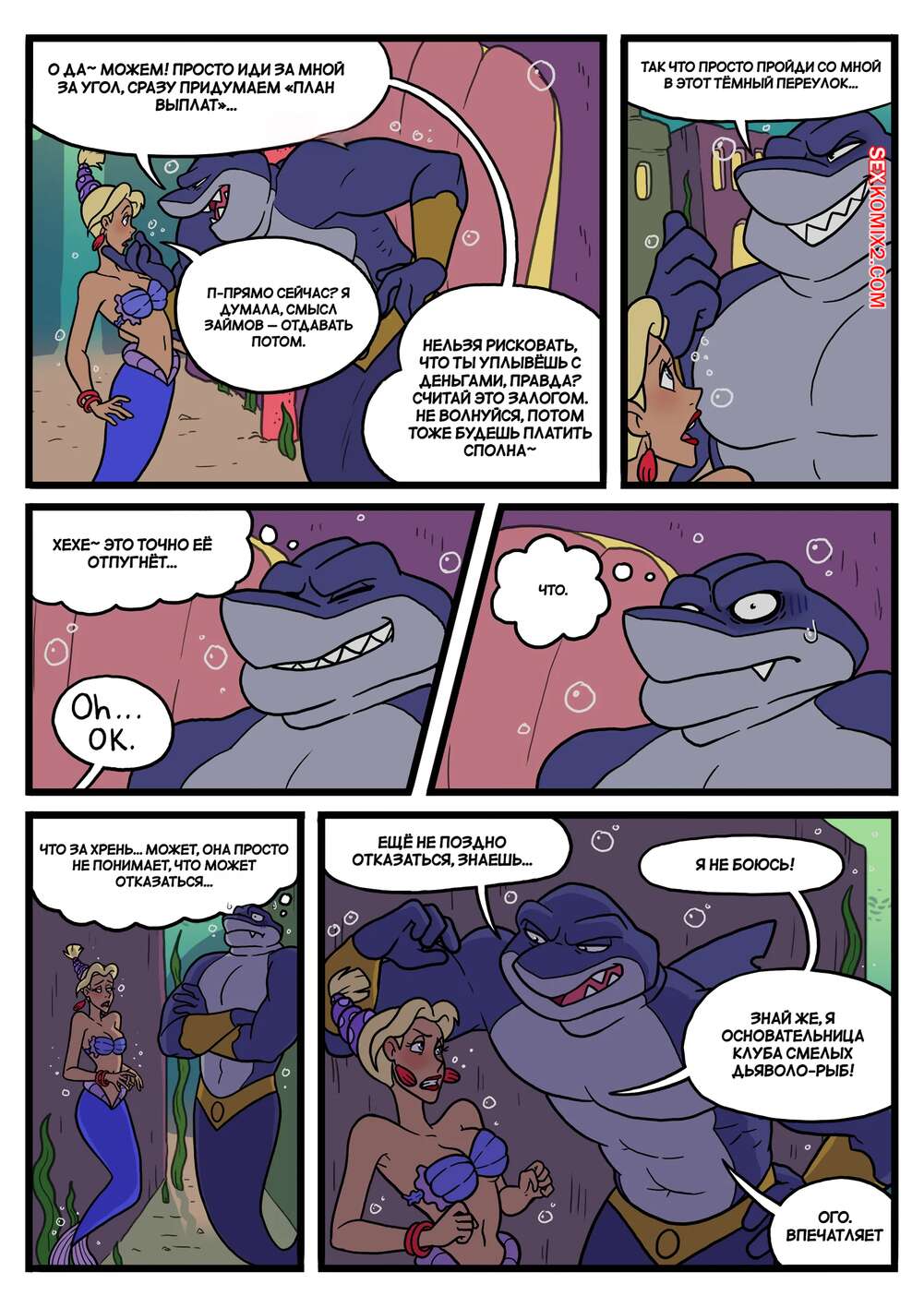 Порно комикс Деньги акулы. Loan Shark. DontFapGirl. Блондиночке русалке нужны деньги, поэтому она обращается к парню акуле за помощью. Он согласен одолжить девушке деньги, но за это она должна ублажить его член.