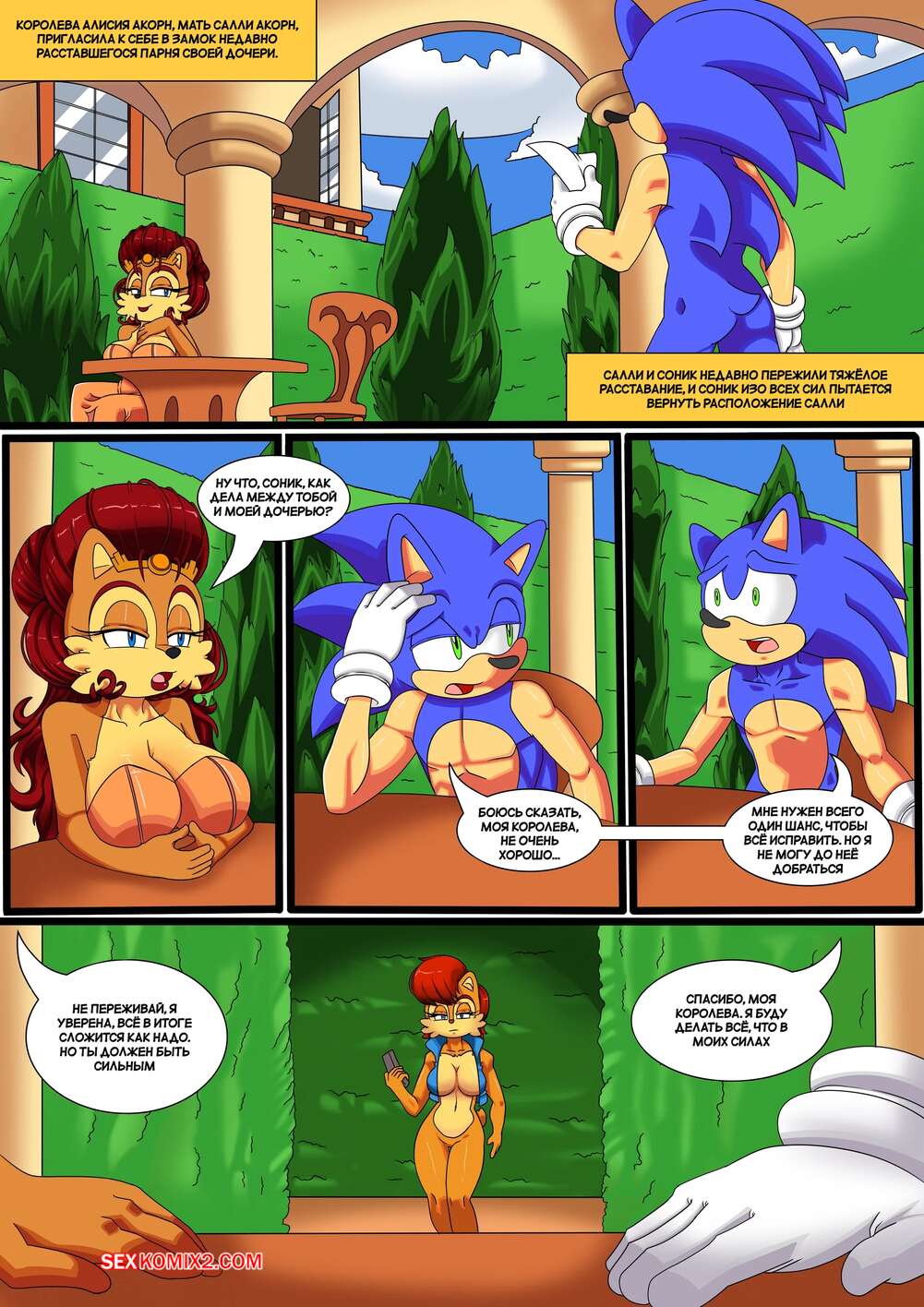 Порно комикс Соник. Шанс Алисии. Alicias Chance. Dreamcastzx1. Королева Алисия застала Соника в плохом настроении и решила помочь парню поднять настроение. Она встала на колени и стала ласкать его член, после чего дала выебать свою пизду и кончить в нее.