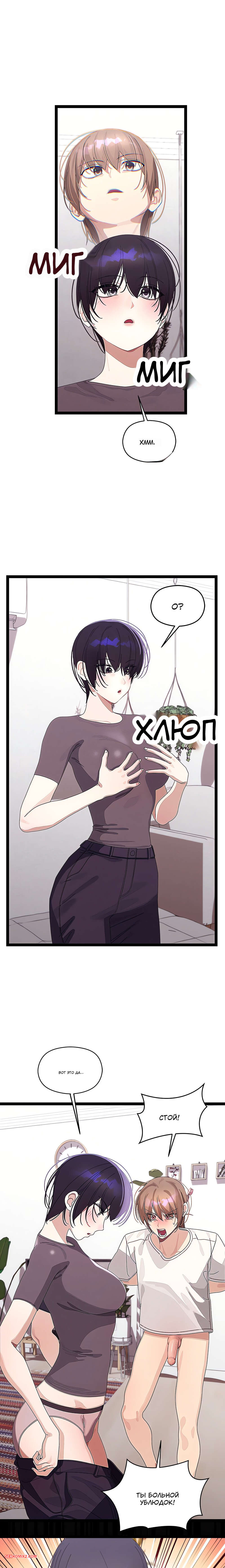 Порно комикс Через клонов становлюсь сильнее. Без цензуры. Часть 23 Горячая брюнетка стала раздеваться перед парнем и его член становится все тверже. Он залез на девушку сверху и его член стал ближе к ее лицо, что ей очень не понравилось.